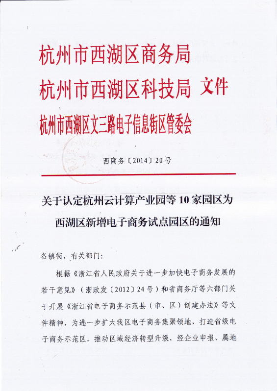 2014年5月14日,西湖區商務局、西湖區科技局和西湖區文三路電子信息街區管委會聯合發文,中大銀座入選西湖區新增電子商務園區。
