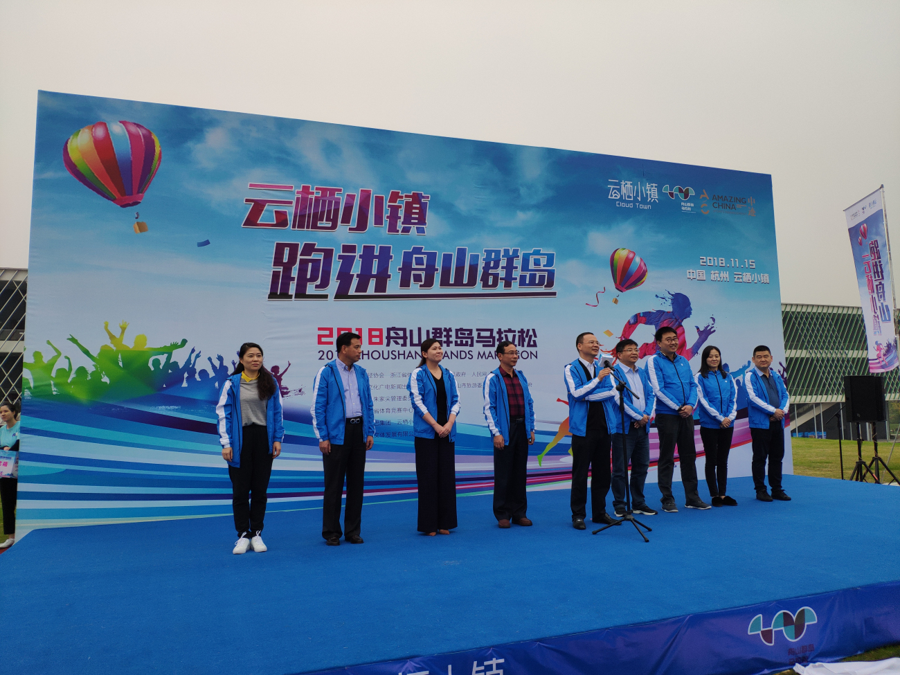 云棲小鎮管委會及舟山市領導參加了開跑意識,上圖為云棲小鎮管委會主任呂鋼鋒講話。
