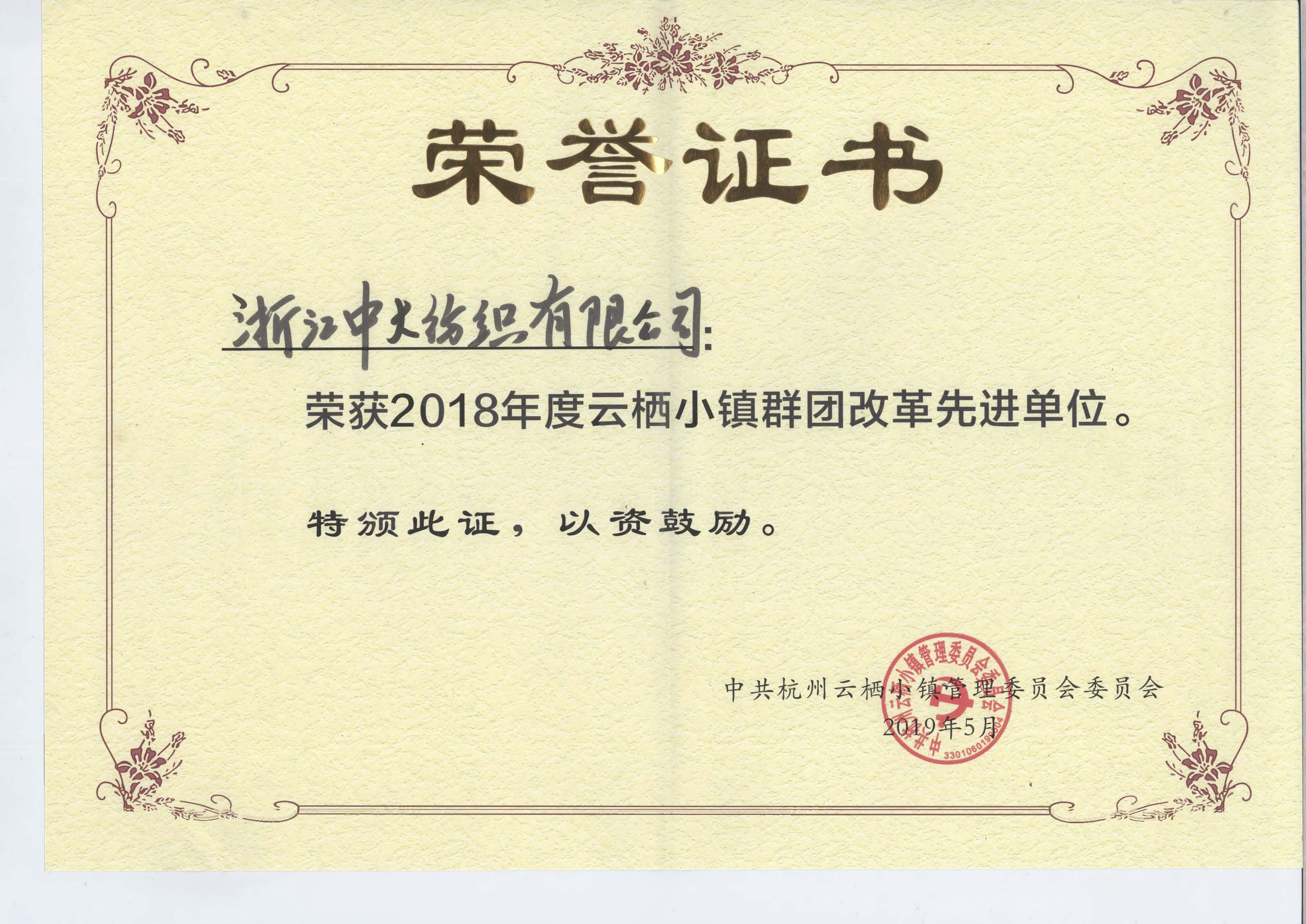 我公司作為2018年度云棲小鎮群團改革先進單位,受到表彰。